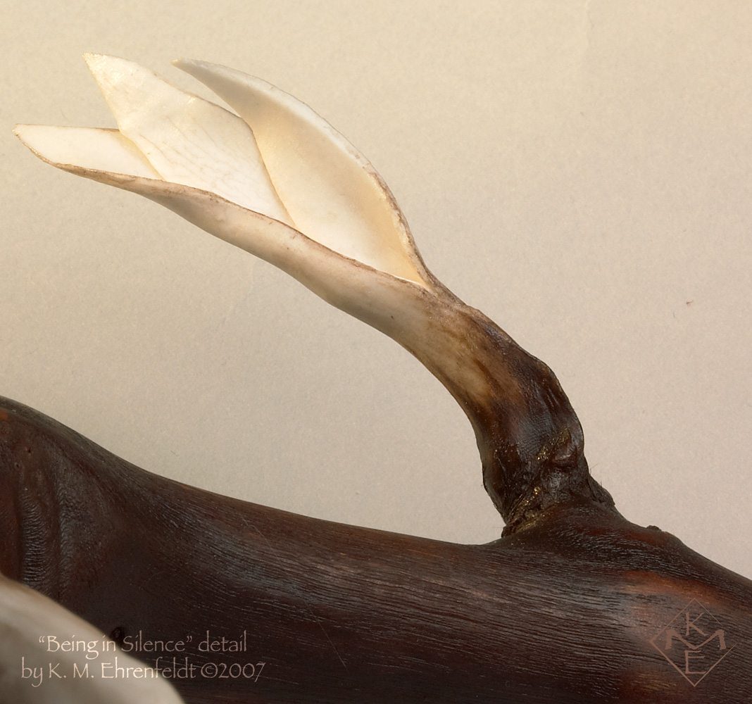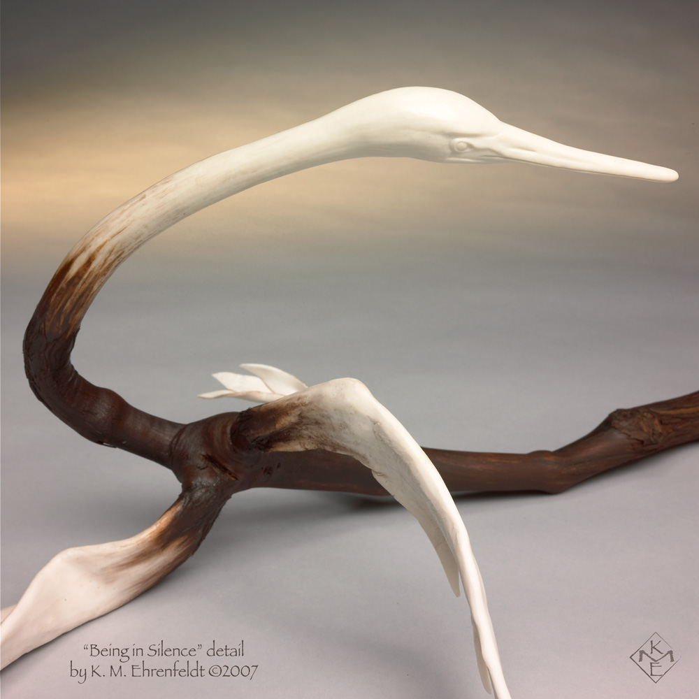 Porcelain, grape vine, feather, oils & stains.